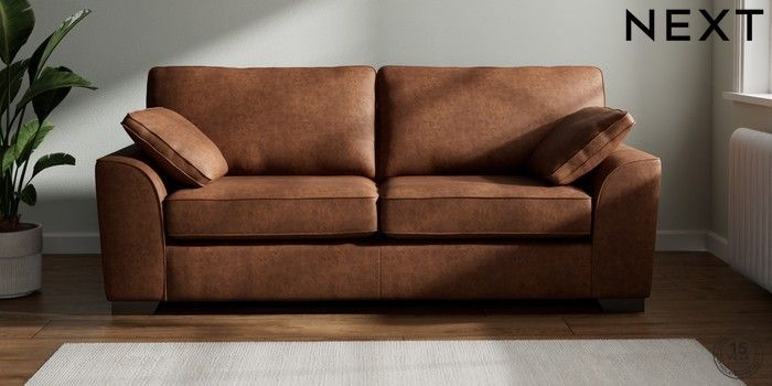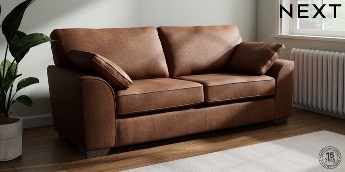 7.3.1 Buy Stamford 3 Seater Sofa Monza Faux Leather Easy Clean Chestnut Brown Large Square Angle - Gunmetal from the Next UK online shop Click here to use our accessible website