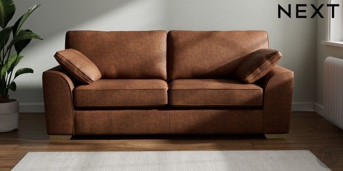 7.3.1 Buy Stamford 3 Seater Sofa Monza Faux Leather Easy Clean Chestnut Brown Large Square Angle - Light from the Next UK online shop Click here to use our accessible website