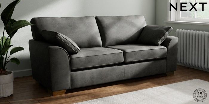 7.3.1 Buy Stamford 3 Seater Sofa Monza Faux Leather Easy Clean Dark Grey Large Square Angle - Brushed Brass from the Next UK online shop Click here to use our accessible website