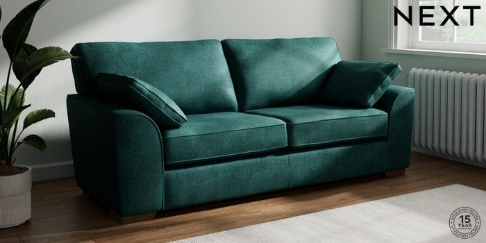 7.2.10 Buy Stamford 3 Seater Sofa Plush Chenille Dark Teal Green Large Square Angle - Mid from the Next UK online shop Click here to use our accessible website