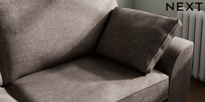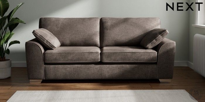 7.3.1 Buy Stamford 3 Seater Sofa Plush Chenille Mink Brown Large Square Angle - Chrome Metal from the Next UK online shop Click here to use our accessible website