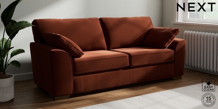7.2.10 Buy Stamford 3 Seater Sofa Plush Velvet Easy Clean Ginger Orange Large Square Angle - Mid from the Next UK online shop Click here to use our accessible website