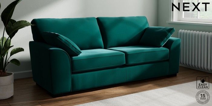 7.3.1 Buy Stamford 3 Seater Sofa Plush Velvet Easy Clean Juniper Green Large Square Angle - Dark from the Next UK online shop Click here to use our accessible website