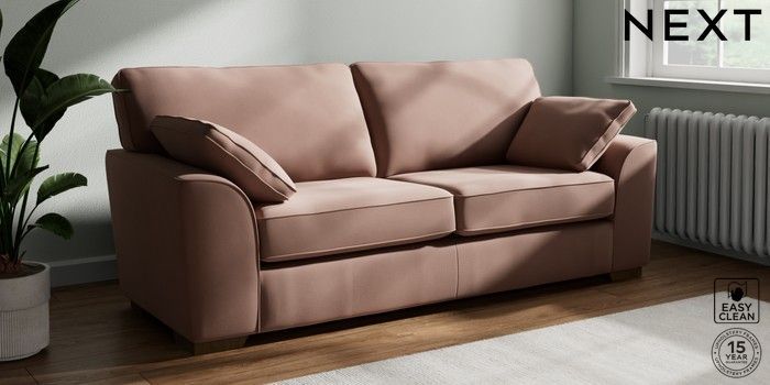7.2.10 Buy Stamford 3 Seater Sofa Plush Velvet Easy Clean Mid Natural Large Square Angle - Mid from the Next UK online shop Click here to use our accessible website