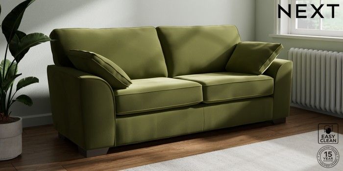 7.3.1 Buy Stamford 3 Seater Sofa Plush Velvet Easy Clean Mid Olive Green Large Square Angle - Gunmetal from the Next UK online shop Click here to use our accessible website