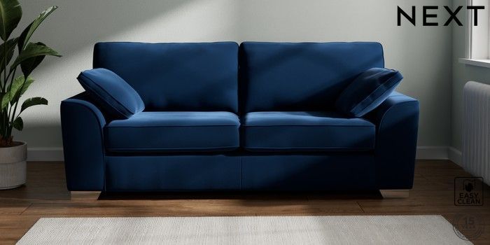 7.2.6 Buy Stamford 3 Seater Sofa Plush Velvet Easy Clean Navy Blue Large Square Angle - Chrome Metal from the Next UK online shop Click here to use our accessible website