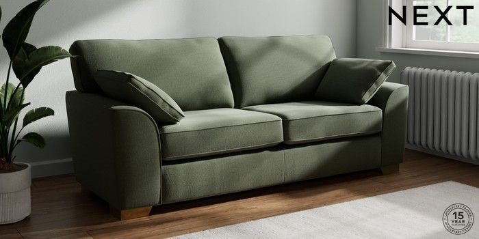 7.3.1 Buy Stamford 3 Seater Sofa Relaxed Linen Look Dark Green Large Square Angle - Brushed Brass from the Next UK online shop Click here to use our accessible website