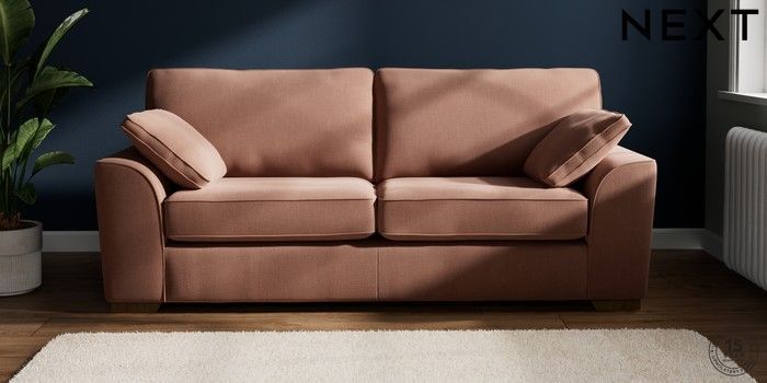 7.2.6 Buy Stamford 3 Seater Sofa Relaxed Linen Look Light Rust Brown Large Square Angle - Mid from the Next UK online shop Click here to use our accessible website