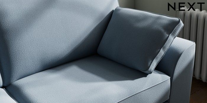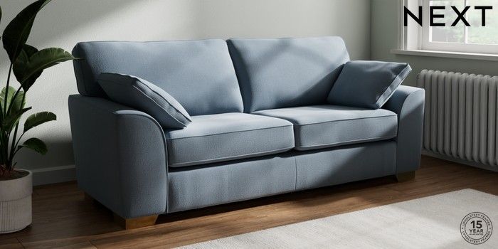 7.2.10 Buy Stamford 3 Seater Sofa Relaxed Linen Look Mid Blue Large Square Angle - Brushed Brass from the Next UK online shop Click here to use our accessible website