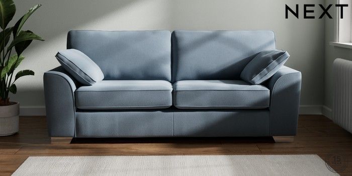 7.3.1 Buy Stamford 3 Seater Sofa Relaxed Linen Look Mid Blue Large Square Angle - Chrome Metal from the Next UK online shop Click here to use our accessible website