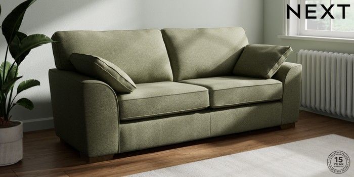 7.2.10 Buy Stamford 3 Seater Sofa Tweedy Chenille Mid Moss Green Large Square Angle - Mid from the Next UK online shop Click here to use our accessible website
