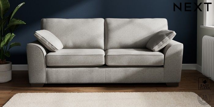 7.2.6 Buy Stamford 3 Seater Sofa Woven Chenille Easy Clean Light Grey Large Square Angle - Gunmetal from the Next UK online shop Click here to use our accessible website
