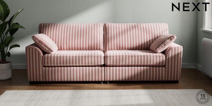 7.3.1 Buy Stamford 4 Seater Sofa Bold Chenille Stripe Dark Pink Large Square Angle - Dark from the Next UK online shop Click here to use our accessible website