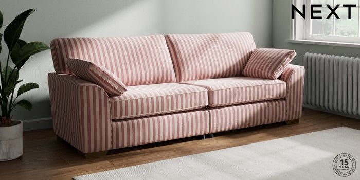 7.3.1 Buy Stamford 4 Seater Sofa Bold Chenille Stripe Dark Pink Large Square Angle - Mid from the Next UK online shop Click here to use our accessible website