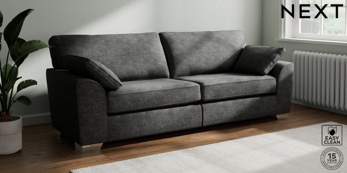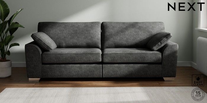 7.3.1 Buy Stamford 4 Seater Sofa Boucle Weave Easy Clean Charcoal Grey Large Square Angle - Chrome Metal from the Next UK online shop Click here to use our accessible website