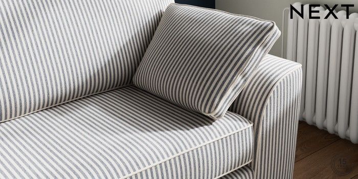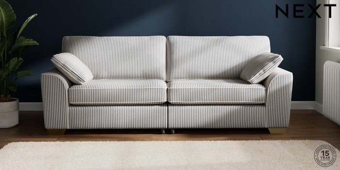 7.3.1 Buy Stamford 4 Seater Sofa Chenille Stripe Slate Blue Large Square Angle - Brushed Brass from the Next UK online shop Click here to use our accessible website