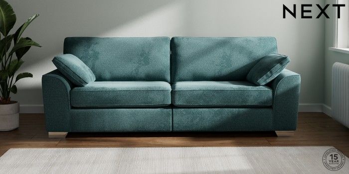 7.2.6 Buy Stamford 4 Seater Sofa Chunky Chenille Mid Teal Green Large Square Angle - Chrome Metal from the Next UK online shop Click here to use our accessible website