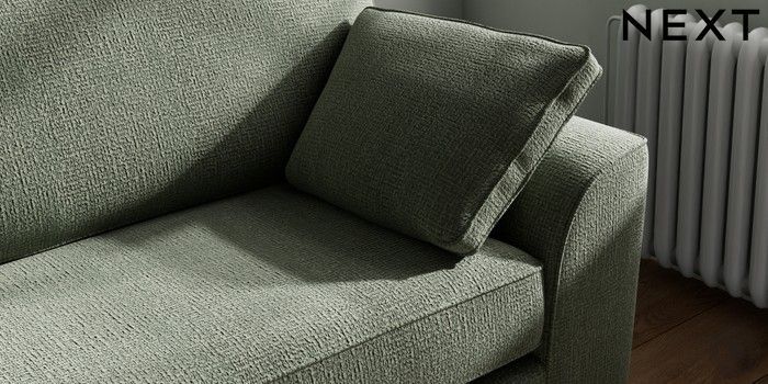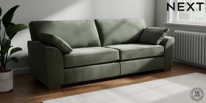 7.2.10 Buy Stamford 4 Seater Sofa Chunky Texture Mid Forest Green Large Square Angle - Brushed Brass from the Next UK online shop Click here to use our accessible website
