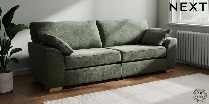 7.2.10 Buy Stamford 4 Seater Sofa Chunky Texture Mid Forest Green Large Square Angle - Light from the Next UK online shop Click here to use our accessible website