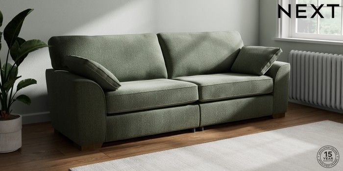 7.2.10 Buy Stamford 4 Seater Sofa Chunky Texture Mid Forest Green Large Square Angle - Mid from the Next UK online shop Click here to use our accessible website
