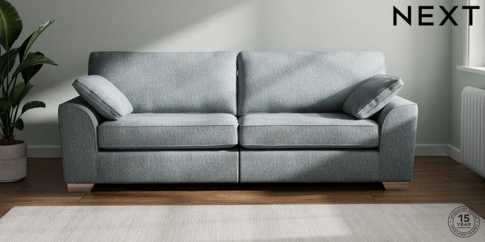 7.2.6 Buy Stamford 4 Seater Sofa Chunky Weave Mid Blue Large Square Angle - Chrome Metal from the Next UK online shop Click here to use our accessible website