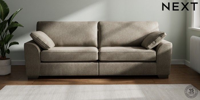 7.2.6 Buy Stamford 4 Seater Sofa Cotswold Chenille Mid Mink Brown Large Square Angle - Gunmetal from the Next UK online shop Click here to use our accessible website