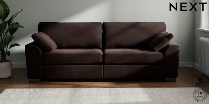 7.3.1 Buy Stamford 4 Seater Sofa Fine Chenille Easy Clean Chocolate Brown Large Square Angle - Gunmetal from the Next UK online shop Click here to use our accessible website