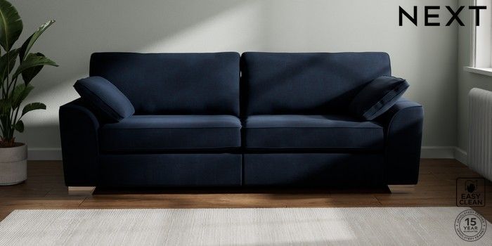 7.2.6 Buy Stamford 4 Seater Sofa Fine Chenille Easy Clean Dark Navy Blue Large Square Angle - Chrome Metal from the Next UK online shop Click here to use our accessible website