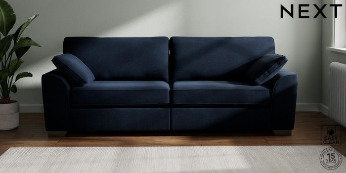 7.3.1 Buy Stamford 4 Seater Sofa Fine Chenille Easy Clean Dark Navy Blue Large Square Angle - Gunmetal from the Next UK online shop Click here to use our accessible website