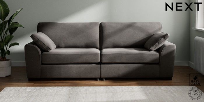 7.2.6 Buy Stamford 4 Seater Sofa Fine Chenille Easy Clean Dark Smoke Grey Large Square Angle - Dark from the Next UK online shop Click here to use our accessible website