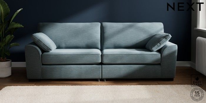 7.2.6 Buy Stamford 4 Seater Sofa Fine Chenille Easy Clean Mid Blue Large Square Angle - Dark from the Next UK online shop Click here to use our accessible website