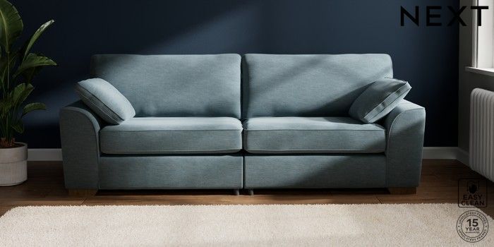 7.2.6 Buy Stamford 4 Seater Sofa Fine Chenille Easy Clean Mid Blue Large Square Angle - Mid from the Next UK online shop Click here to use our accessible website
