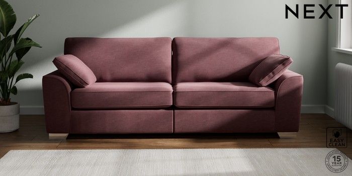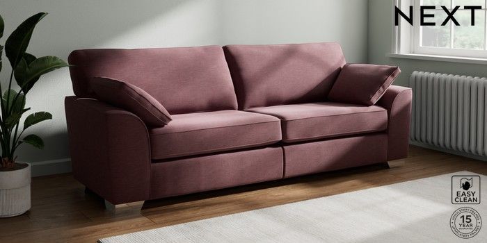 7.3.1 Buy Stamford 4 Seater Sofa Fine Chenille Easy Clean Mid Mulberry Purple Large Square Angle - Chrome Metal from the Next UK online shop Click here to use our accessible website