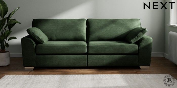 7.2.6 Buy Stamford 4 Seater Sofa Luxe Chenille Dark Green Large Square Angle - Chrome Metal from the Next UK online shop Click here to use our accessible website