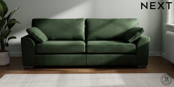 7.2.10 Buy Stamford 4 Seater Sofa Luxe Chenille Dark Green Large Square Angle - Gunmetal from the Next UK online shop Click here to use our accessible website