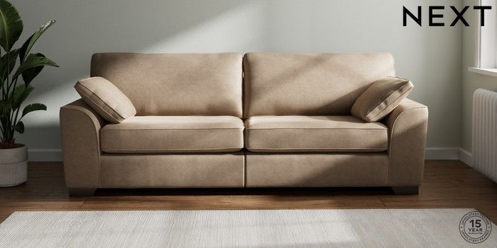 7.2.6 Buy Stamford 4 Seater Sofa Luxe Chenille Mid Camel Beige Large Square Angle - Gunmetal from the Next UK online shop Click here to use our accessible website