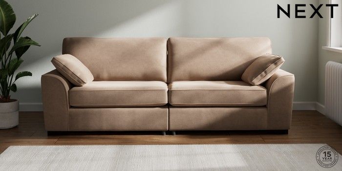 7.2.6 Buy Stamford 4 Seater Sofa Luxe Chenille Mid Natural Large Square Angle - Dark from the Next UK online shop Click here to use our accessible website