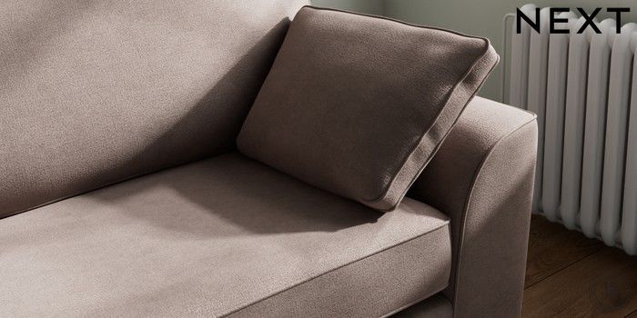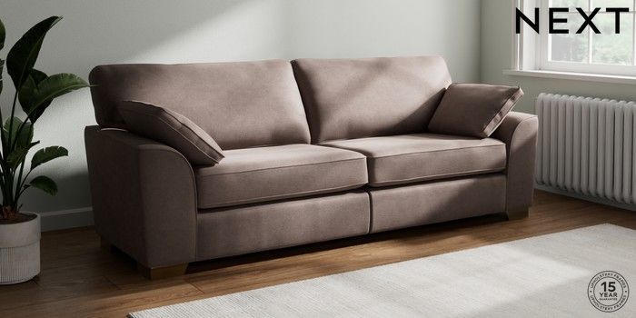 7.2.10 Buy Stamford 4 Seater Sofa Luxe Chenille Mink Brown Large Square Angle - Brushed Brass from the Next UK online shop Click here to use our accessible website