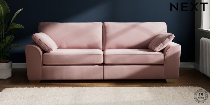 7.3.1 Buy Stamford 4 Seater Sofa Natural Mix Light Rose Pink Large Square Angle - Brushed Brass from the Next UK online shop Click here to use our accessible website