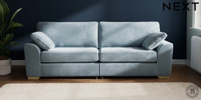 7.2.6 Buy Stamford 4 Seater Sofa Plush Chenille Light Blue Large Square Angle - Light from the Next UK online shop Click here to use our accessible website