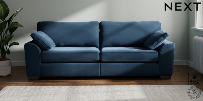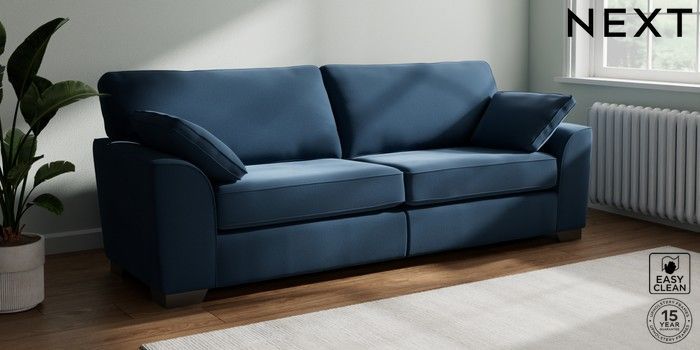 7.3.1 Buy Stamford 4 Seater Sofa Plush Velvet Easy Clean Airforce Blue Large Square Angle - Gunmetal from the Next UK online shop Click here to use our accessible website