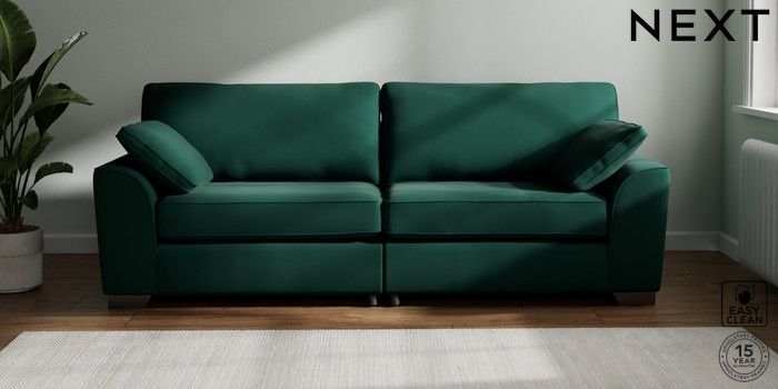 7.2.6 Buy Stamford 4 Seater Sofa Plush Velvet Easy Clean Bottle Green Large Square Angle - Gunmetal from the Next UK online shop Click here to use our accessible website