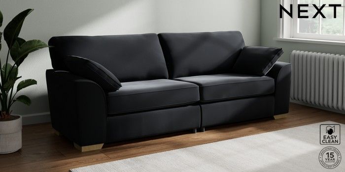 7.2.10 Buy Stamford 4 Seater Sofa Plush Velvet Easy Clean Charcoal Grey Large Square Angle - Light from the Next UK online shop Click here to use our accessible website