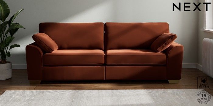 7.2.6 Buy Stamford 4 Seater Sofa Plush Velvet Easy Clean Ginger Orange Large Square Angle - Brushed Brass from the Next UK online shop Click here to use our accessible website