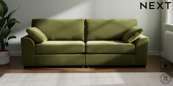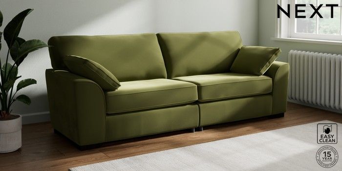 7.3.1 Buy Stamford 4 Seater Sofa Plush Velvet Easy Clean Mid Olive Green Large Square Angle - Dark from the Next UK online shop Click here to use our accessible website