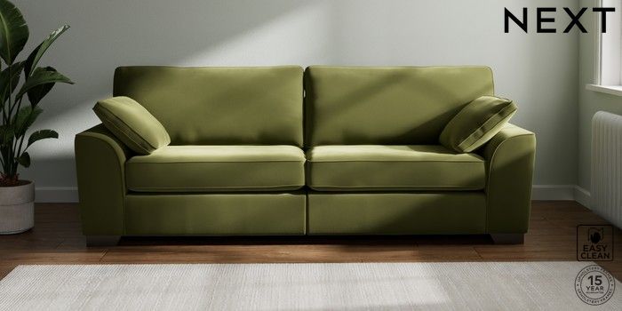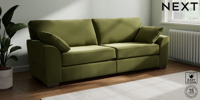 7.3.1 Buy Stamford 4 Seater Sofa Plush Velvet Easy Clean Mid Olive Green Large Square Angle - Gunmetal from the Next UK online shop Click here to use our accessible website