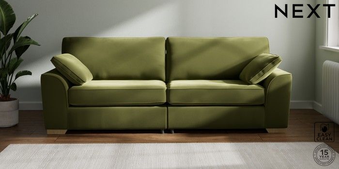 7.2.6 Buy Stamford 4 Seater Sofa Plush Velvet Easy Clean Mid Olive Green Large Square Angle - Light from the Next UK online shop Click here to use our accessible website