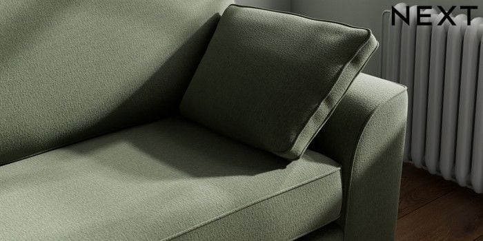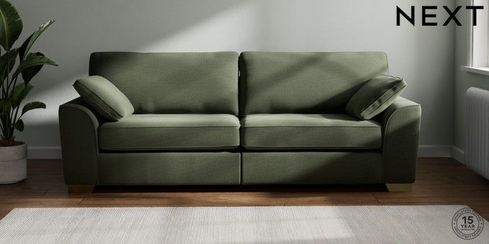 7.2.10 Buy Stamford 4 Seater Sofa Relaxed Linen Look Dark Green Large Square Angle - Brushed Brass from the Next UK online shop Click here to use our accessible website