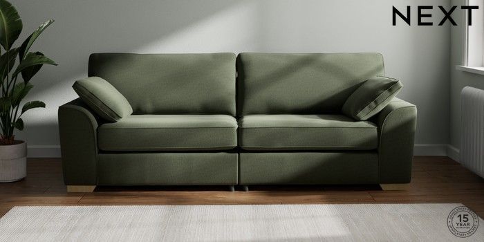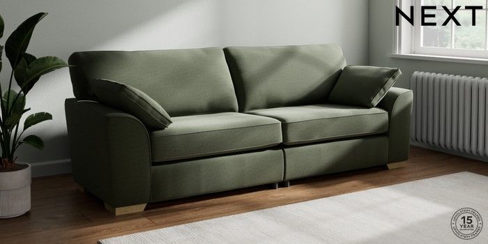 7.2.10 Buy Stamford 4 Seater Sofa Relaxed Linen Look Dark Green Large Square Angle - Light from the Next UK online shop Click here to use our accessible website