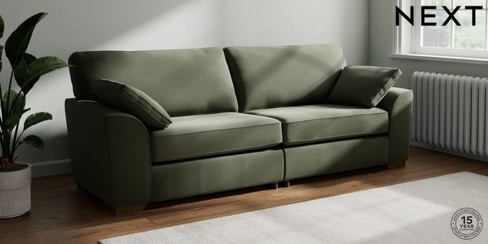 7.2.10 Buy Stamford 4 Seater Sofa Relaxed Linen Look Dark Green Large Square Angle - Mid from the Next UK online shop Click here to use our accessible website